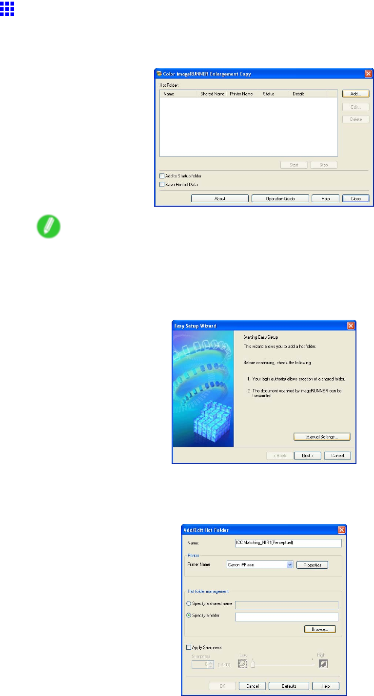2. Open the “Color imageRUNNER Enlargement Copy” dialog box, and then click the “Add” button.