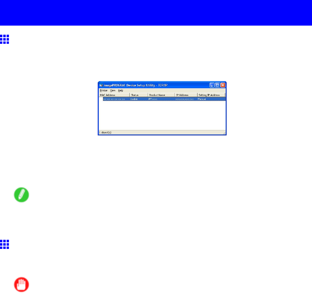 • For details, refer to the imagePROGRAF Device Setup Utility help.
