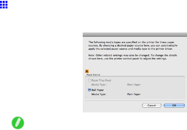 Shows the Paper Source supported by the printer , as well as the type of paper loaded. T o update the media