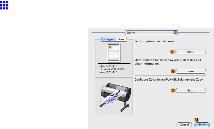 Click to start imagePROGRAF Printmonitor , which enables you to view the status of print jobs.