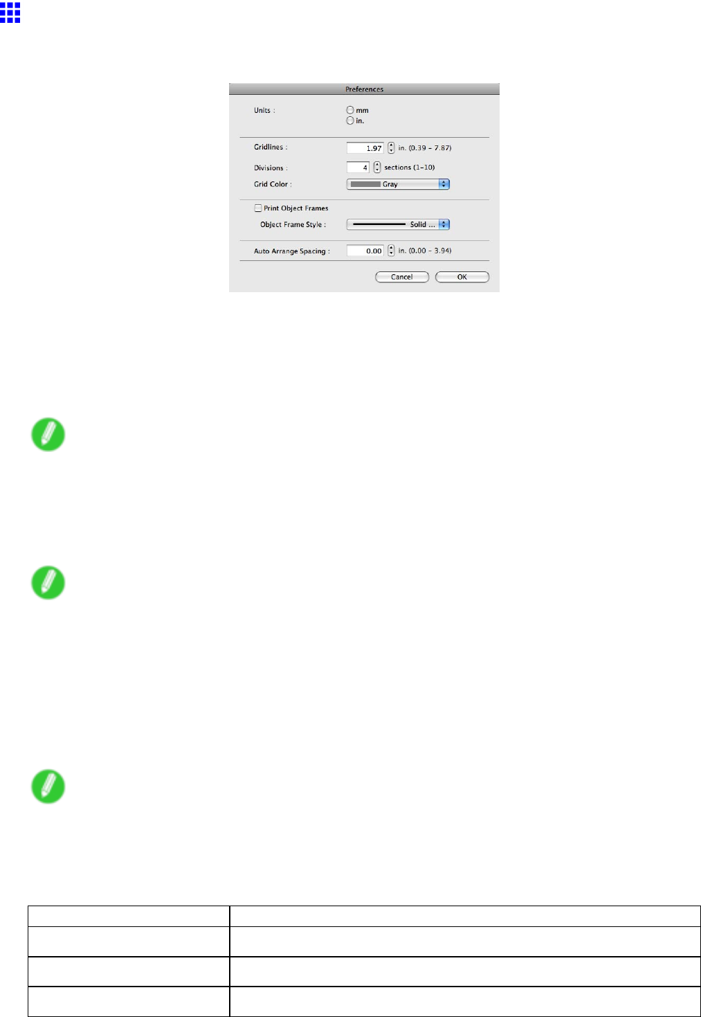 This dialog box appears when you select “Preferences” from the “imagePROGRAF Advanced Preview” menu.