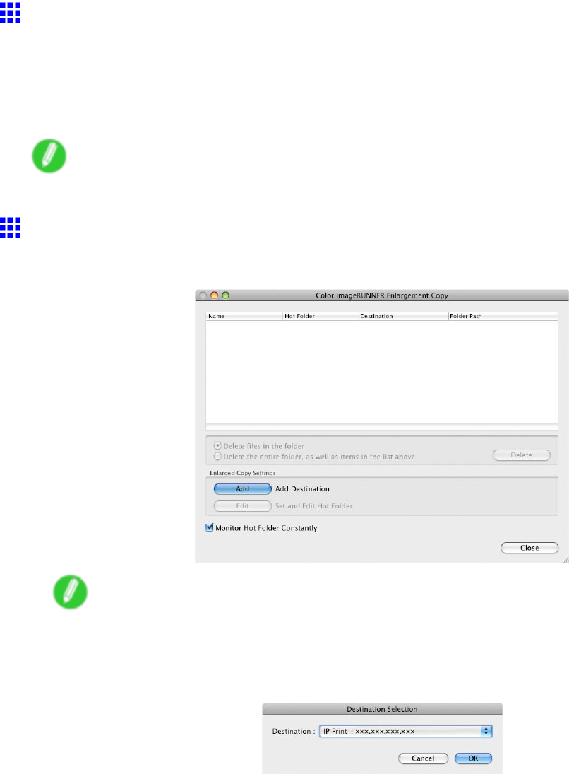 2. Click the “Add” button in “Enlarged Copy Settings” to open the “Destination Selection” dialog box.