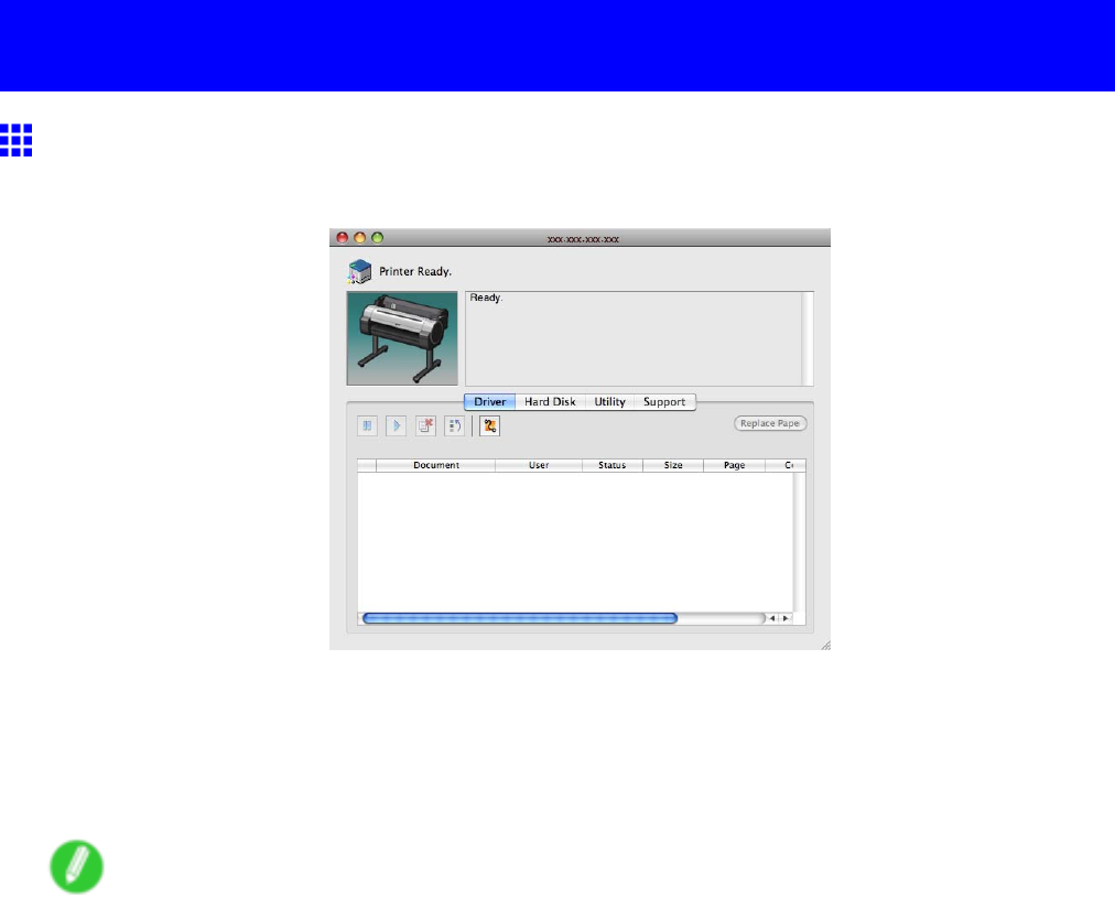 “imagePROGRAF Printmonitor” is a utility for checking the printer status and managing print jobs.
