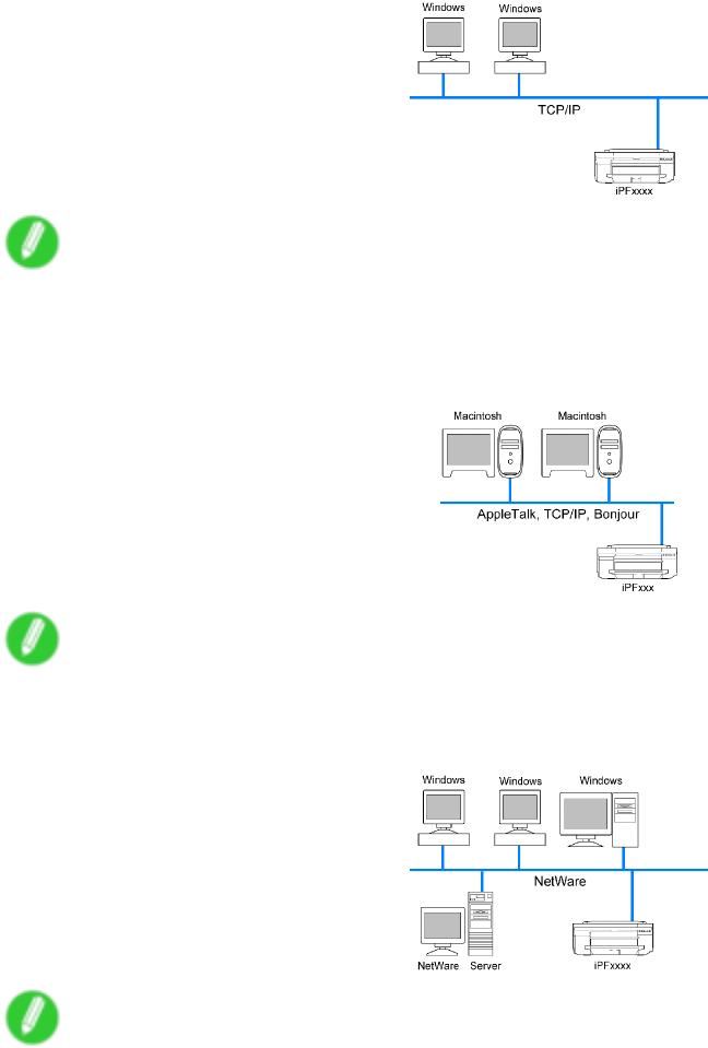 • Even if there is a NetW are server in your network environment, you can use it in conjunction with TCP/IP