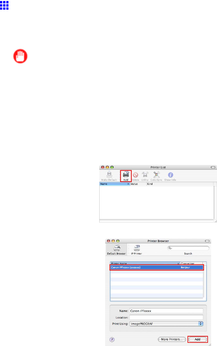 In Mac OS X 10.2.8 and later , use Bonjour functions to easily connect the printer to the network. Follow the