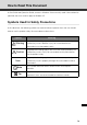 How to Read This Document In Start Guide and Operation Guide, screens in Windows Vista are mainly used. Unless otherwise specified, the same screens apply to Windows XP. Symbols Used for Safety Precautions In this document, the following symbols are used to indicate important items the user should know to use this product safely. Be sure to observe these items. Symbol Meaning Inappropriate handling against the instruction accompanied by this Warning symbol may result in death or injury.