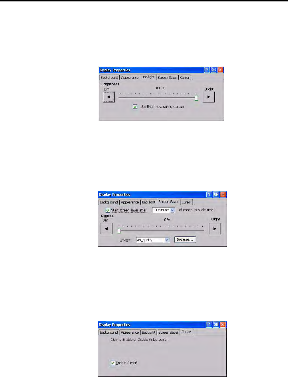 Use the Cursor tab to enable or disable the visible screen cursor.