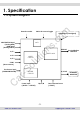 1. Specification 1.4 Components Sub-board* 1ea TOUCH cable * 1ea (HLCDCA0007) (QCPASS0433) (HTOUCH0007) Remote control * 1ea (REMOTE0001) LVDS cable * 1ea (HLVDSC0003) co m LCD cable * 1ea TOUCH OUT cable * 1ea ar -S ol ut io ns . (HTOUCH0004) A/V cable * 1EA (HAVCAB0002) Mode cable * 1EA C (HARETC0001) R-CAM POWER cable * 1EA (HARETC0002) RGB cable * 1ea (HRGBCA0013) IR cable * 1EA (HIRCAB0002) POWER cable (16P) * 1EA (HPOWER0040) -4www.car-solutions.com support@car-solutions.