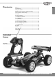 Precauciones de seguridad Los modelos radio controlados no son juguetes, su manejo debe ser aprendido paso a paso. E • Los niños menores de 14 años sólo deberían manejar este modelo bajo supervisión adulta. puede causar daños y lesiones en caso de conducción incontrolada, siendo el usuario legalmente responsable de ello. La conducción de coches radio controlados es un fascinante hobby que debe ser practicado con la necesaria precaución y respeto.