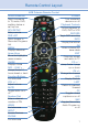 Remote Control Layout ADB Potenza Remote Control Device Selection Send commands to TV, audio, DVD, auxiliary device or set top box RCU SETUP Setup remote DVR LIST Quick Access to Recorded Programs List MENU Displays Menubar Arrow Keys Move the highlight in menu screens GUIDE Displays Guide DAY - / DAY + Jumps Guide 12 hours ahead or back Function Buttons For future use VOL + / Adjust volume MUTE Toggle audio on or off Number Pad Enter a channel number or PIN WWW For future use INPUT Access Devices PHONE For
