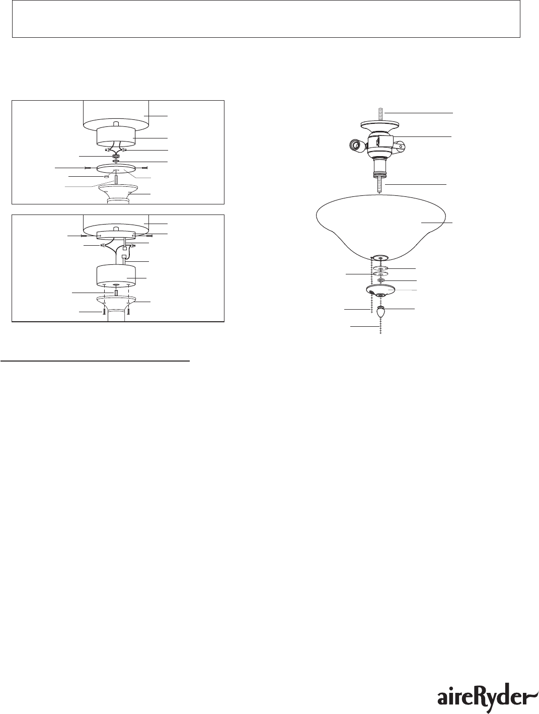 *** Make sure the hole of glass shade and the hole of the cap for fan was match.
