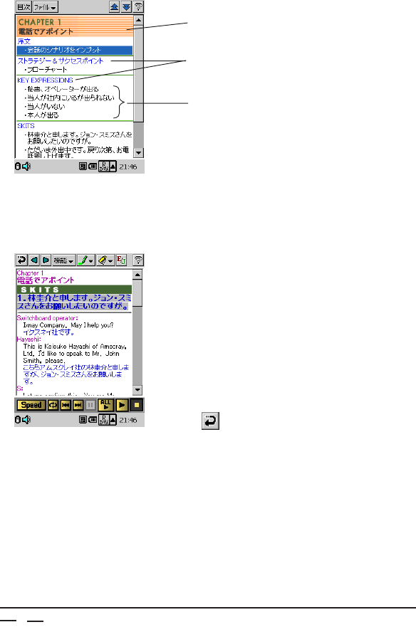 • 目次画面の「章」のレベル、およびサブ目次画面の「章」「節」のレベルには、カーソルは移動しま