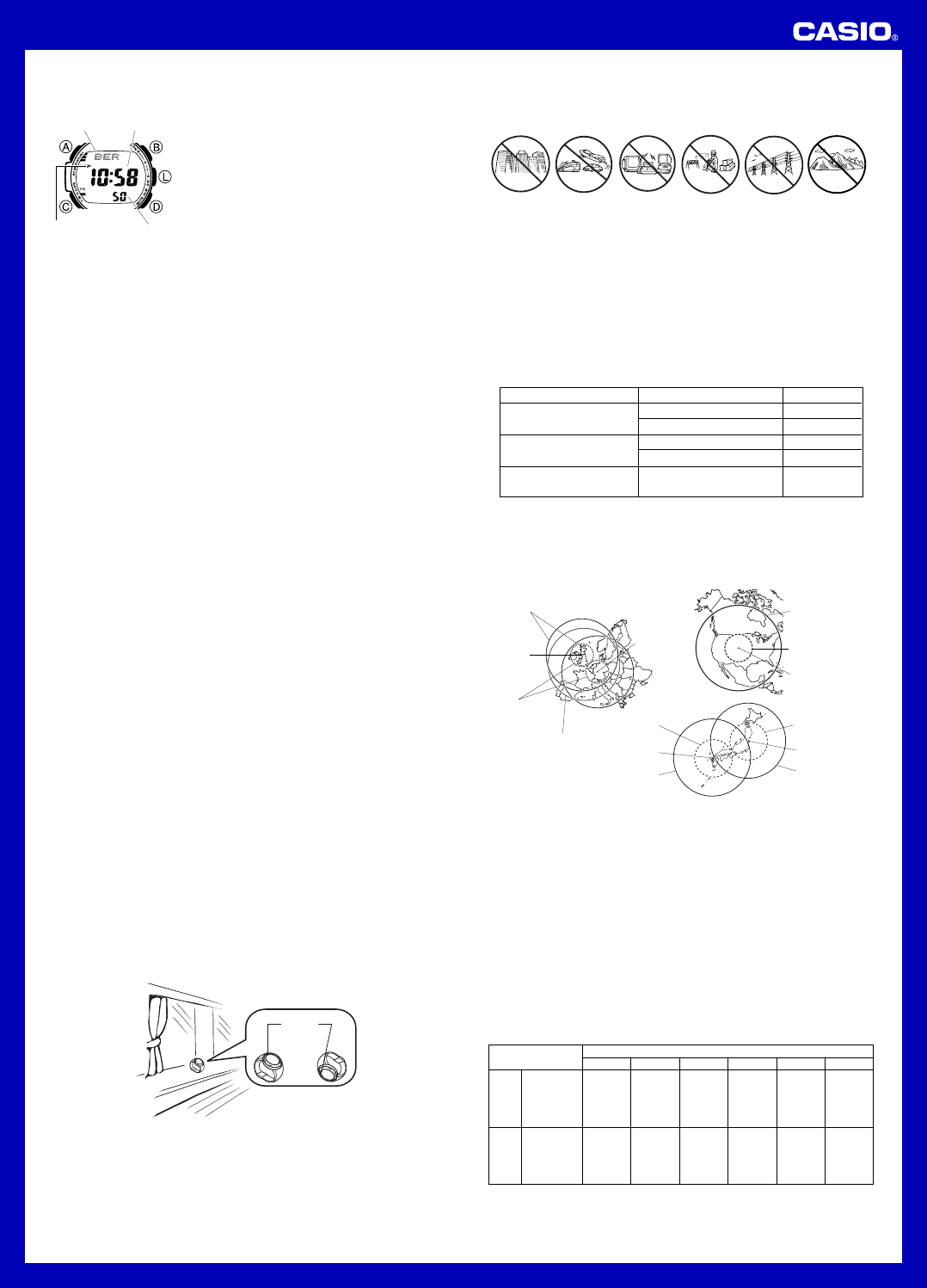 • Näheres zu den Empfangsbereichen der Uhr können Sie den Zeichnungen