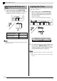 Configuring Settings with the Keyboard TONE/SETTING In addition to selecting tones and Music Library tunes, you also can use the TONE/SETTING button in combination with the keyboard keys to configure effect, keyboard touch, and other settings. To configure settings with the keyboard 1. Use the “Parameter List” on page E-20 to find the setting you want to configure, and note its details. 2.