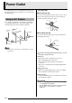 Assembling the Stand 3. Use the two screws I to secure the top left and right edges of the back panel C to the brackets 5 of side panels A and B. 6. Place the piano onto the stand. • At location 6, slip the G clip onto to the I screw before installing the screw. 9 9 5 6 G I 4. I • At this time the screws on the bottom of the piano 8 should hook into the cutouts in the stand brackets 9. Next, secure the bottom of the back panel C with the six F screws.