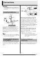 Connections IMPORTANT! • Whenever connecting something to the digital piano, first use the VOLUME controller to set the volume to a low level. After connecting, you can adjust the volume to the level you want. Connecting Headphones Pin plug Audio amplifier AUX IN jack, etc. RIGHT (Red) LEFT (White) Stereo standard plug To digital piano’s PHONES jack Pin jack Pin plug (red) Guitar amplifier Keyboard amplifier, etc.