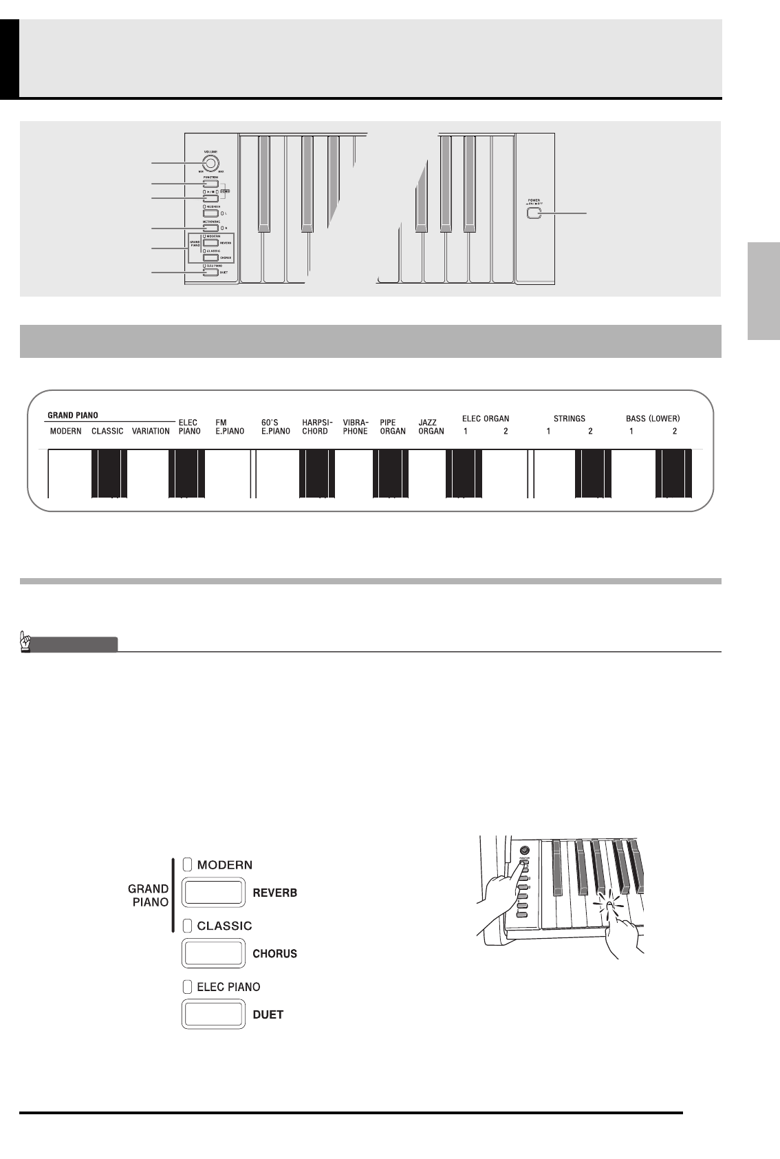 • Los nombres de los tonos están indicados encima de las teclas a las que han sido asignados.