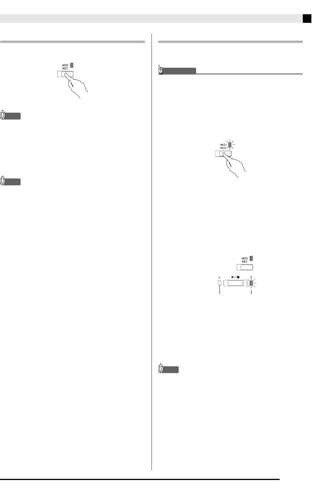 the MIDI REC lamp is flashing.