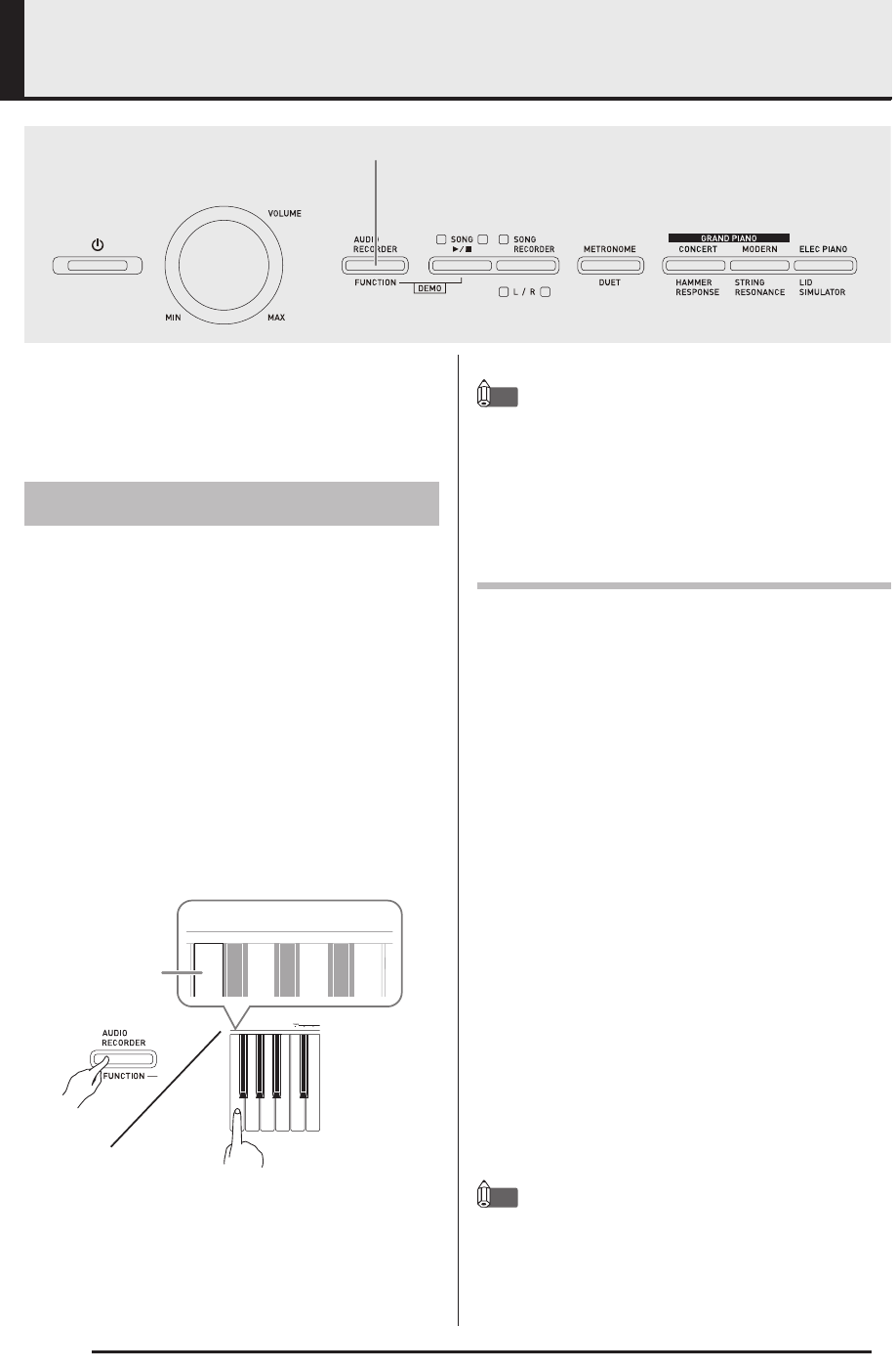 • 按⼀个琴键时,数码钢琴将鸣⾳通知所