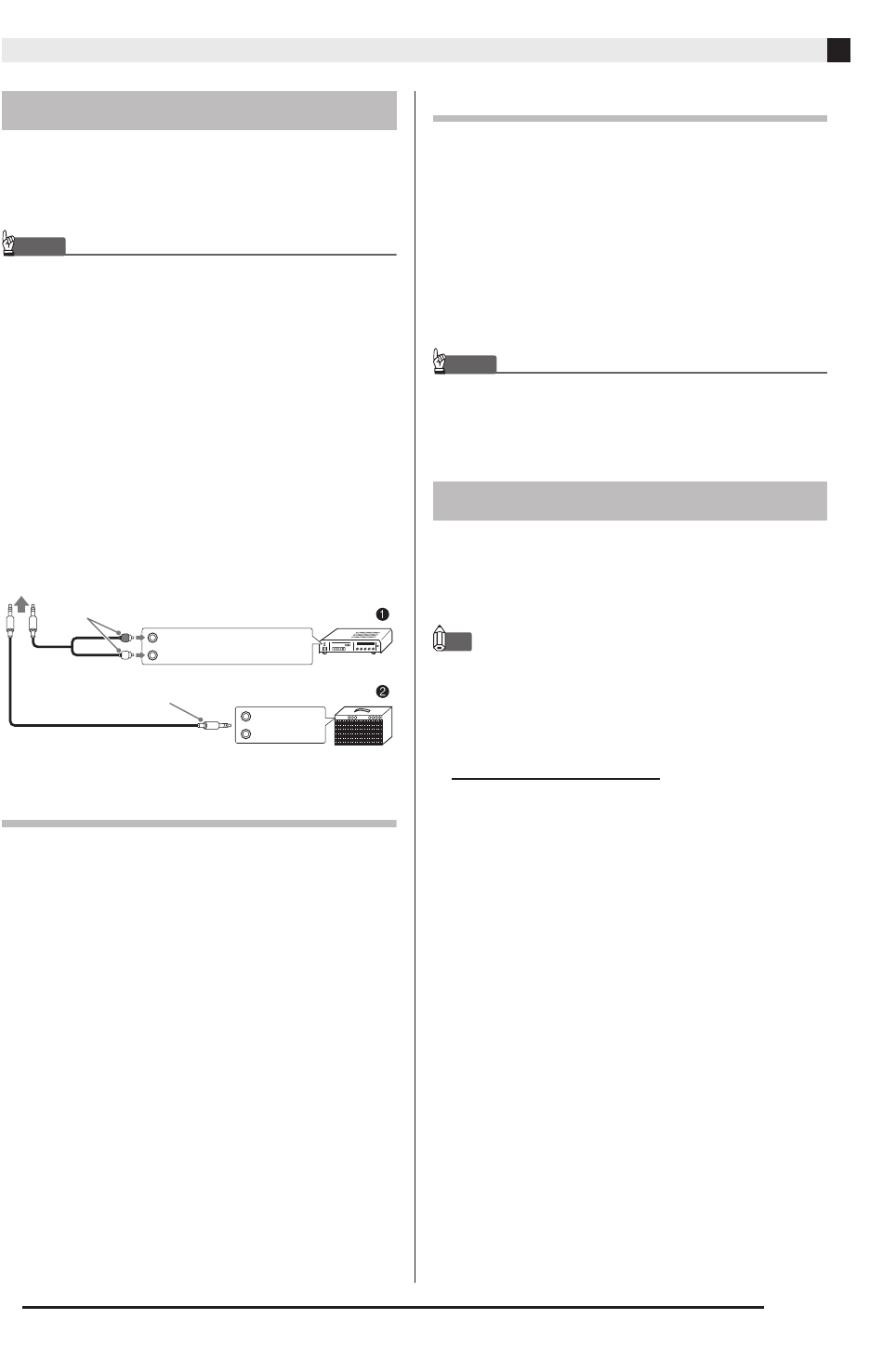 在数码钢琴上连接⾳频设备或乐器放⼤器,