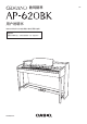 参考资料 产品规格 型号 AP-620BK 键盘 88 个钢琴琴键,备有触键感应功能 (3 种) 最大多重音 128 个音符 音色 250 种 (可叠加及分割) 音效 回响 (4 种),合唱 (4 种),亮度 (–3 至 0 至 3),声乐共鸣 节拍器 • 每小节的拍数: 0, 2, 3, 4, 5, 6 • 速度范围:20 至 255 二重奏 可调音域:左侧键盘为 0 至 3 个八度,右侧键盘为 –4 至 –1 个八度 自动伴奏 • • • • 示范曲 68 首 (8 首音色示范曲; 60 首音乐库乐曲) 音乐库 • 内置乐曲: 60 首 • 用户乐曲:最多 10 首 (每首乐曲最大 320KB*) 情景预设 内置预设:300 用户预设:最多 50 种 (每种预设最大约为 8KB*) 登录 (4 个节奏区 + 8 个音色区) × 8 个库 乐曲存储器 • • • • • 踏板 制音器 (有半踏操作功能),柔音,抽选延音 其他功能 • • • • • • MIDI 16 频道多音色接收, GM 标准 1 SD 存储卡 • SD 存储卡槽 •