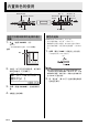 内置音色的使用 键盘分割点的移动 如何将键盘分割为两种音色 您可以分割键盘,使左侧 (低音区)弹奏一种音色,而 右侧 (高音区)弹奏另一种音色。 例如:要分割键盘,使 GM SLAP BASS 1 音色在左侧 (低 使用下述操作步骤可以指定键盘上左侧及右侧之间分割 点的位置。此处称为 “分割点”。 左 (低音区)侧 右 (高音区)侧 音区),而三角钢琴(GRAND PIANO)音色在右侧 (高音区)时。 左 (低音区) 音色:GM SLAP BASS 1 右 (高音区) 音色:GRAND PIANO 分割点 1. 按 1. dk (分割(SPLIT))钮。 此时分割(SPLIT)灯点亮,表示键盘已被分割为两种音 色。 按住 dk (分割(SPLIT))钮直到分割点设定 画面出现,如下所示。 点亮 现在的分割点琴键名 2.