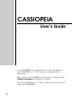 CASSIOPEIA User’s Guide Your CASSIOPEIA comes with a Hardware Manual in addition to this CASSIOPEIA User’s Guide. Be sure to read the Hardware Manual first. Before using your CASSIOPEIA for the first time, carefully read the Safety Precautions in the Hardware Manual. Keep this CASSIOPEIA User’s Guide on hand for reference whenever using your CASSIOPEIA.