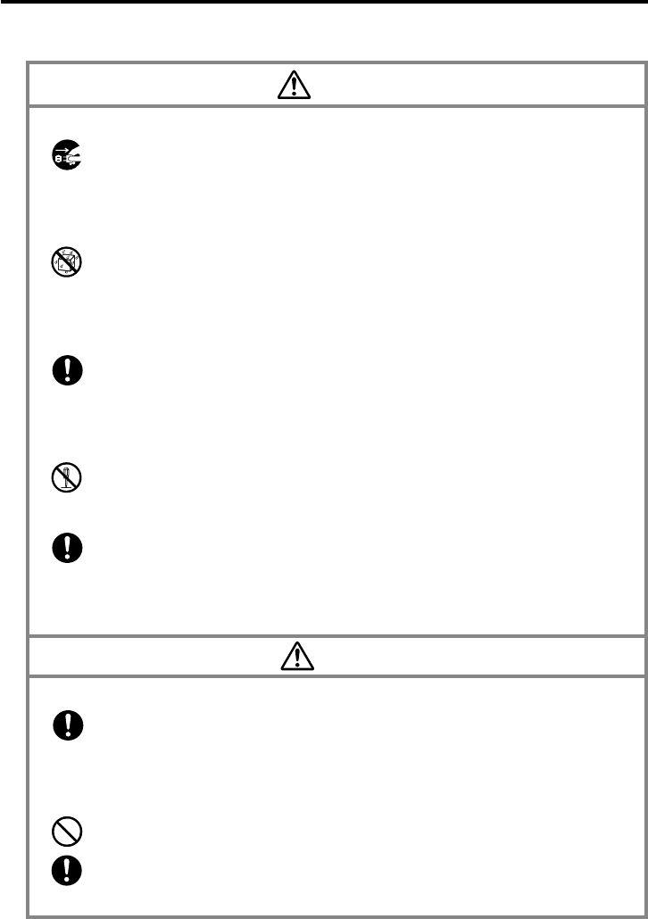• Should any foreign matter (metal, water or other liquid) ever get into the
