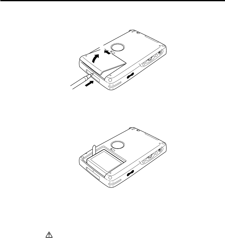 bottom of the CASSIOPEIA to release the battery cover, and then remove it.