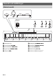 Översikt och inställningar Allmän översikt 1 2 3 4 Baksida 6 7 8 9 5 bk A0 C1 C2 C3 C4 C5 C6 C7 1 Strömbrytare P 6 Pedalingång (DAMPER PEDAL) 2 Volymreglage (VOLUME) 7 Ljudutgång (PHONES/OUTPUT) 3 Funktionsknapp (FUNCTION) 8 Ljudingång (AUDIO IN) 4 Flygelknapp (GRAND PIANO) 9 Likströmsintag (DC 12V) 5 USB-port (USB) bk Funktioner tilldelade tangenter*2 SV-2 C8 *1