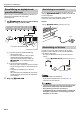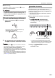 Översikt och inställningar • Observera de viktiga föreskrifterna nedan för att undvika skador på nätkabeln. Under användning • Ryck inte alltför hårt i kabeln. • Ryck inte i kabeln upprepade gånger. • Undvik att tvinna kabeln vid basen av uttaget eller kontakten. Under rörelse • Koppla alltid bort nättillsatsen från nätuttaget innan digitalpianot flyttas. Under förvaring • Rulla ihop och bind fast nätkabeln, men linda den aldrig runt nättillsatsen.