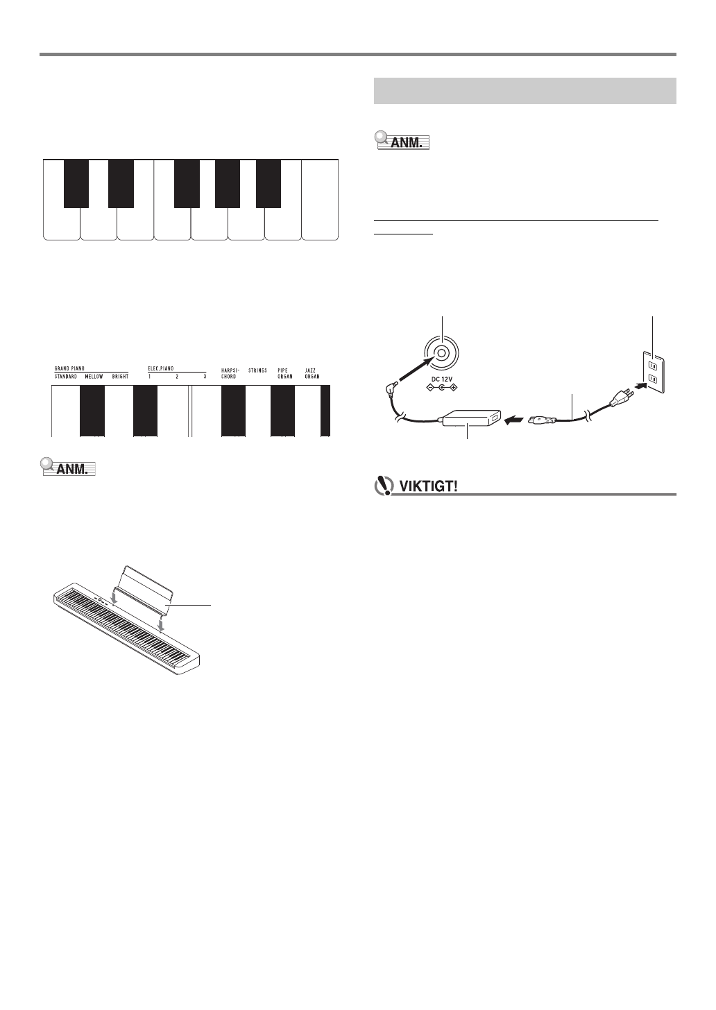 digitalpiano. Användning av en annan typ av nättillsats kan