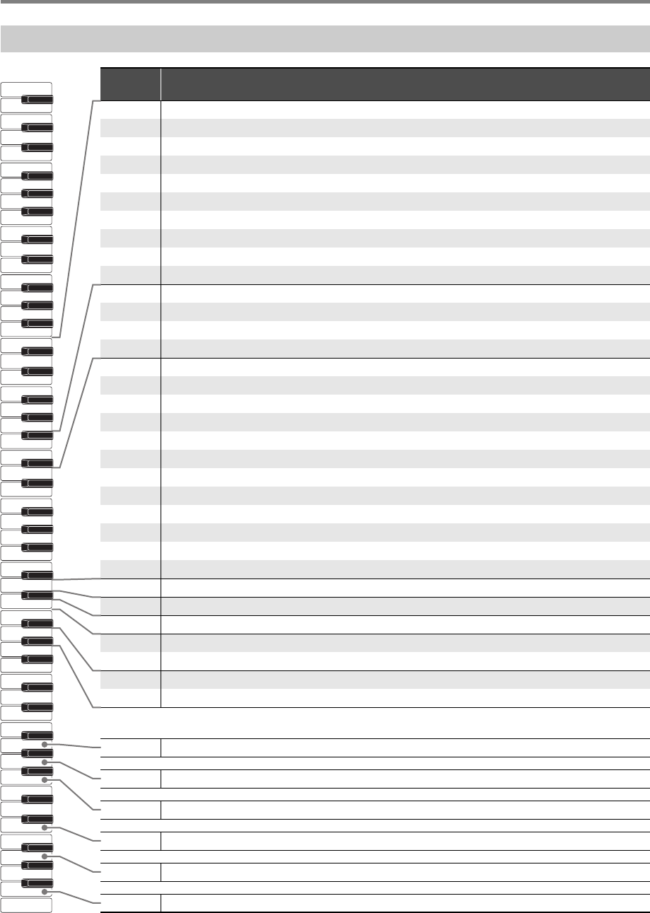 Les fonctions ci-dessous ne sont pas marquées au-dessus des touches du piano.