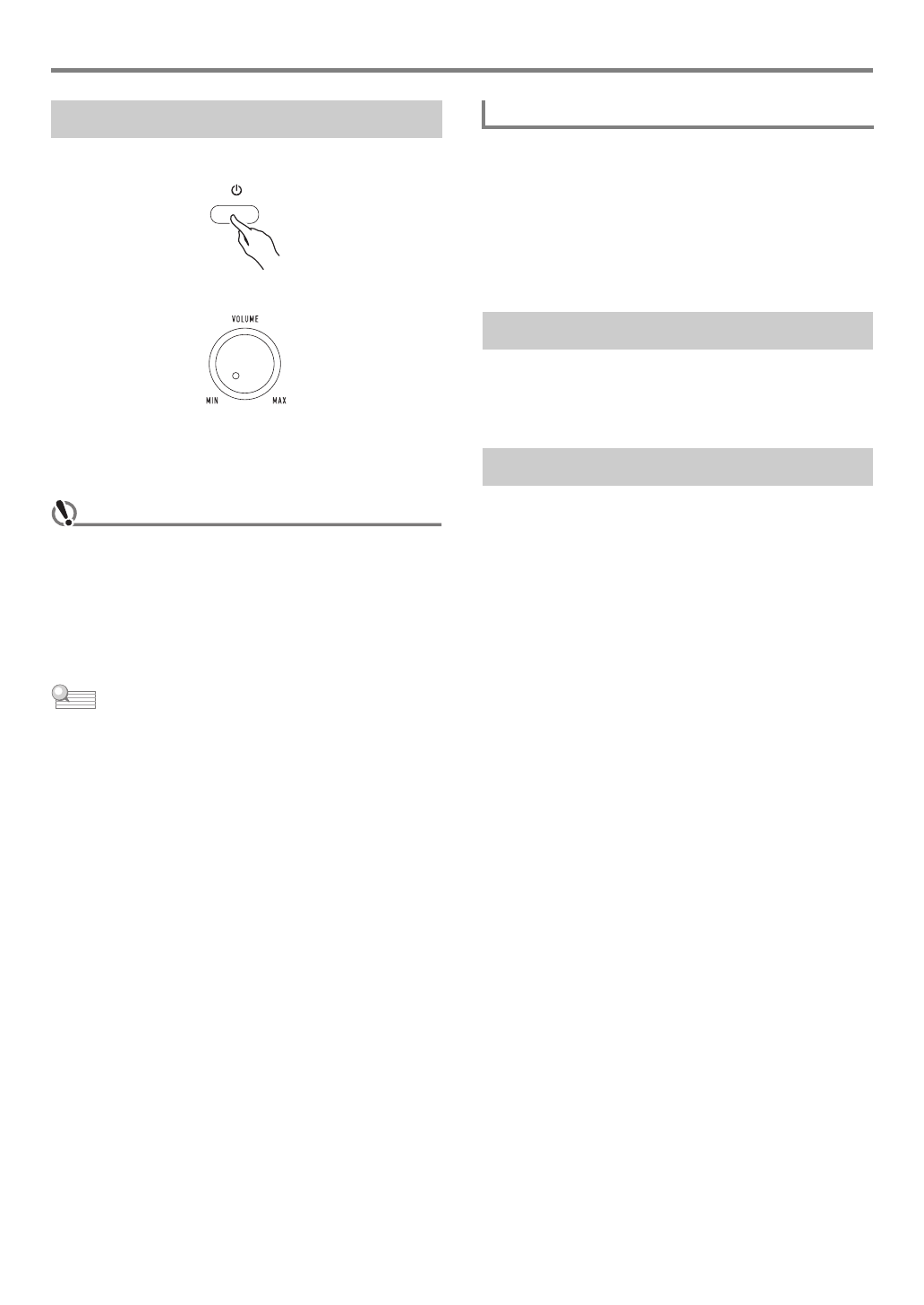 • 關閉數位鋼琴的電源將使目前的設定被清除。下次開機時數