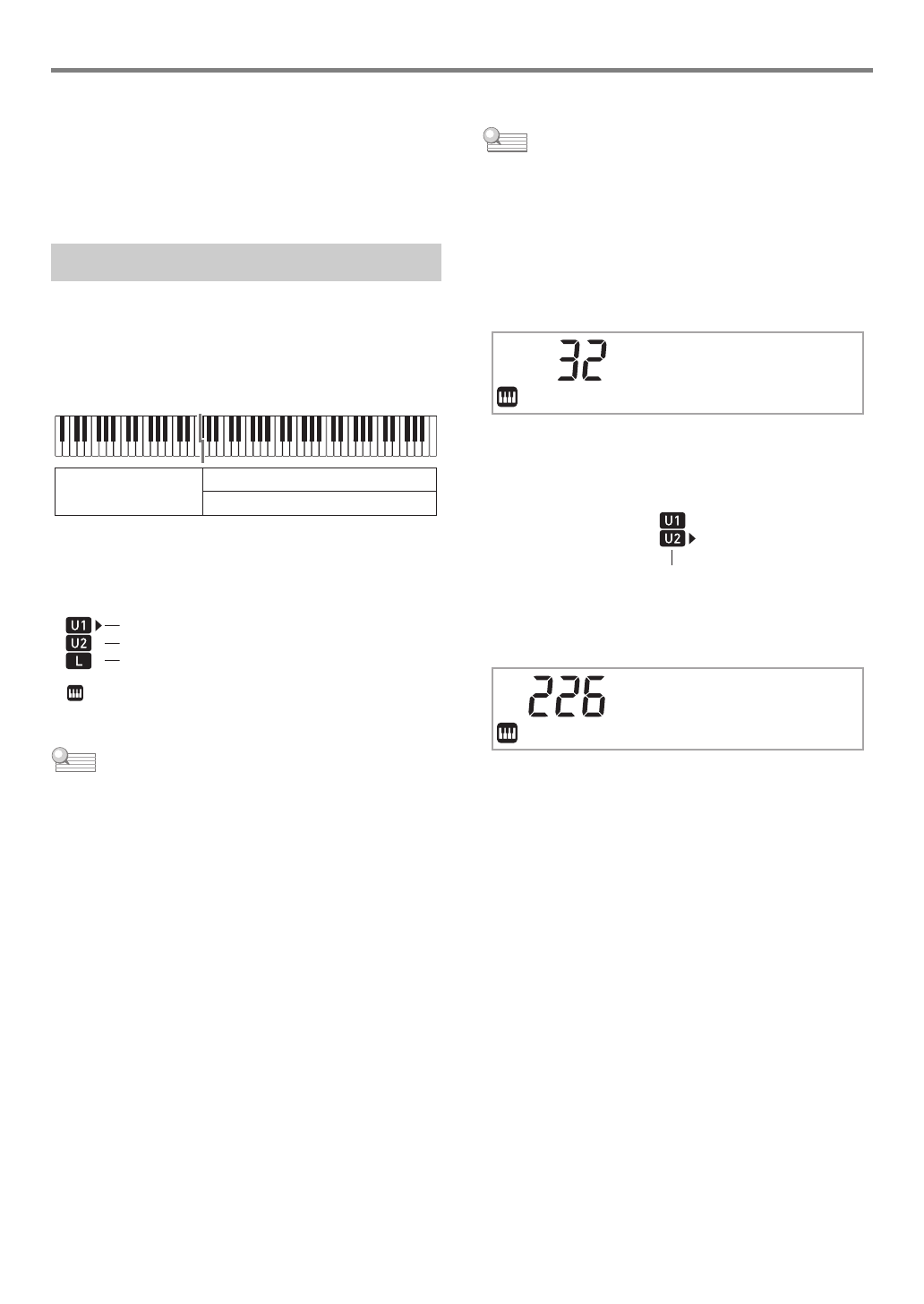 兩種音色時,鍵盤的低音區發出 Lower 聲部的音色。