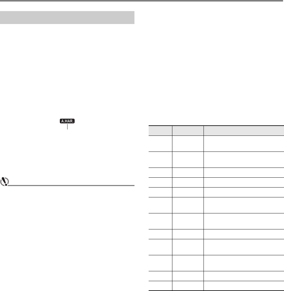 按 cm A.HAR./ARPEG. 鈕並確認 A.HAR. 指示符出