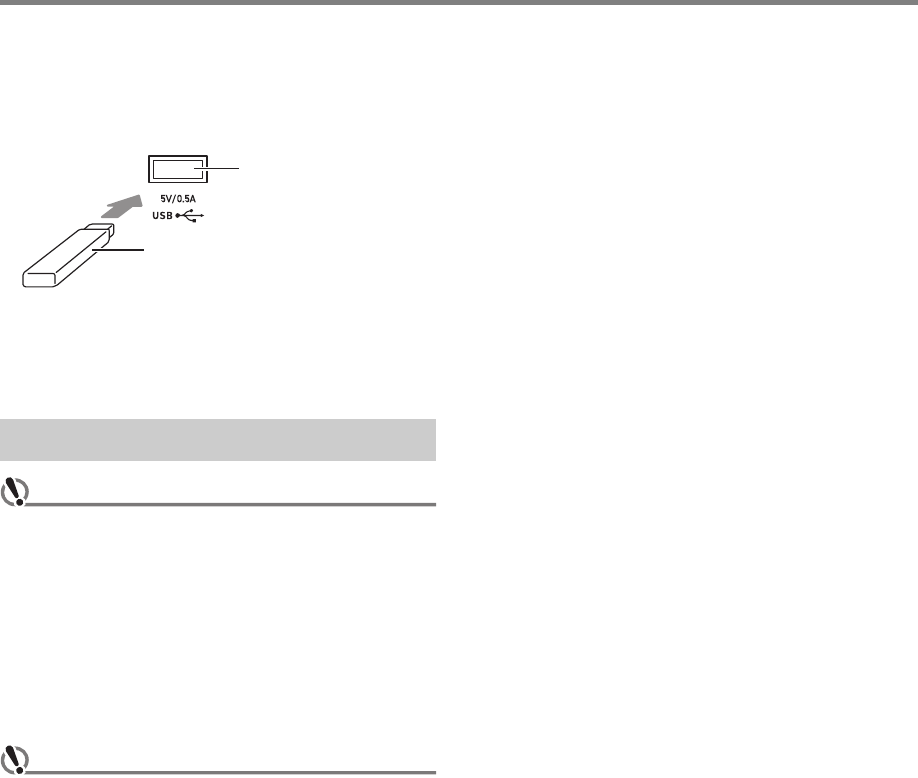 • 在首次使用之前必須在數位鋼琴上格式化 U 盤。