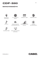 Omslag CDP-S90 SV INSTRUKTIONSHÄFTE Förberedelse av strömförsörjning På- och avslagning av strömmen Anslutning av en pedal Användning av hörlurar Val av en ton Ändring av tonhöjd med halvtonssteg (transponering) Finstämning av en tonhöjd (stämning) Lyssning på demonstrationsspelning Användning av effekter Länkning med en smart enhet (APP-funktion) CDPS90-SW-2A