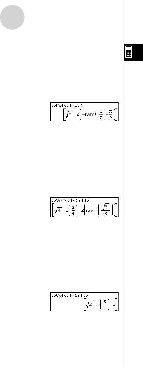 Example: To transform the rectangular form [1,1,1] into its equivalent spherical form