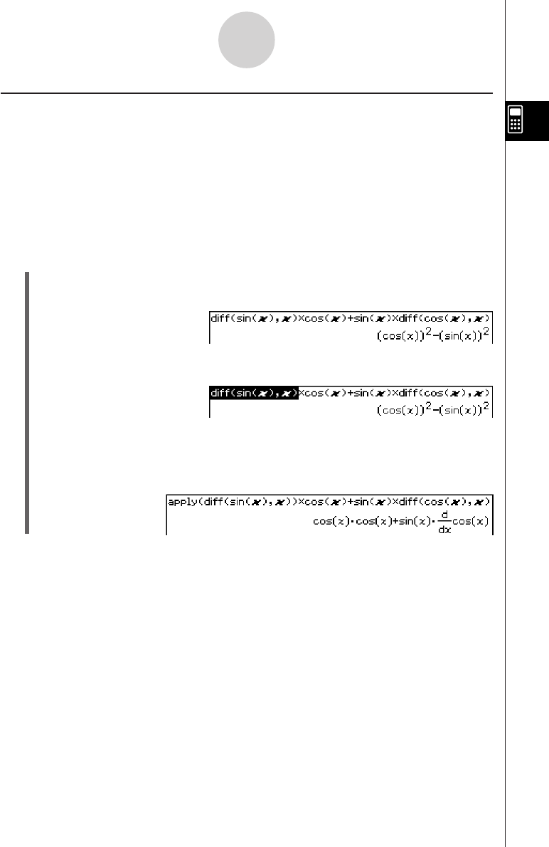 Example: To calculate the result of diff(sin(x),x) × cos(x) + sin(x) × diff(cos(x),x), and then