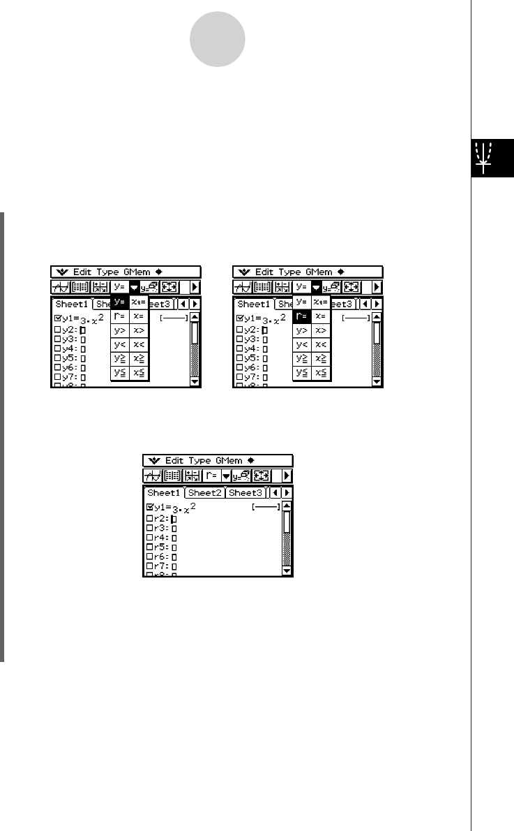 (2) Tap the down arrow next to “y =”, or on the menu tap [Type]. On the list that appears,