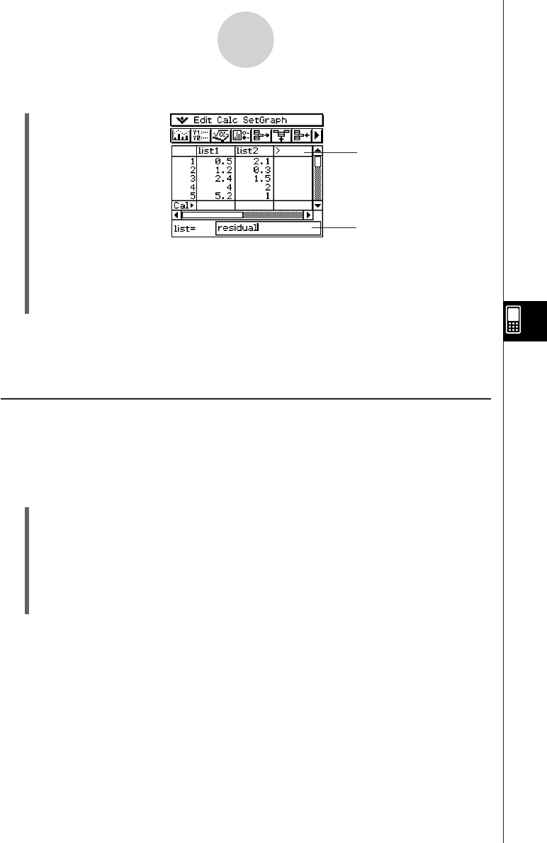 (1) On the List window menu bar, tap [Calc] and then [Linear Reg].