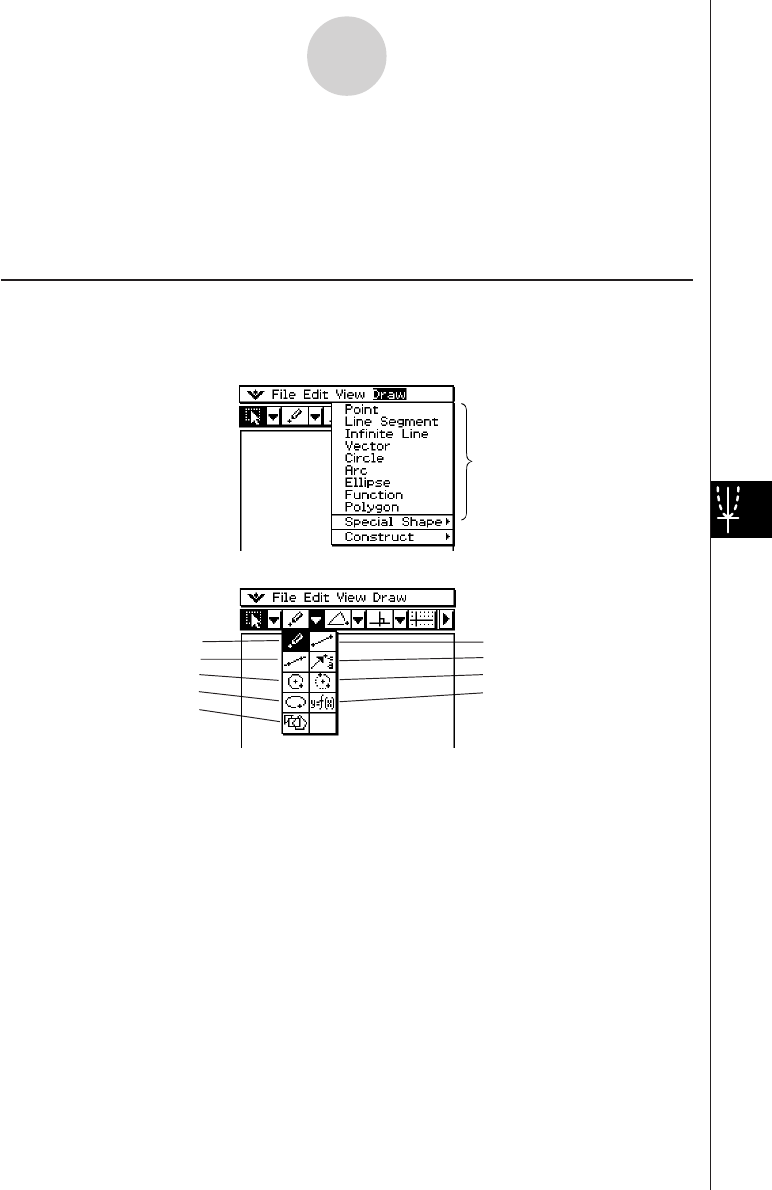 The [Draw] menu makes it easy to draw a variety of different figures. Each [Draw] menu