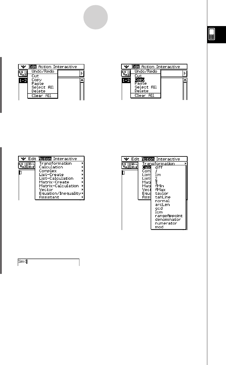 Example 2: Choosing [lim], which is on the [Calculation] submenu of the [Action] menu.