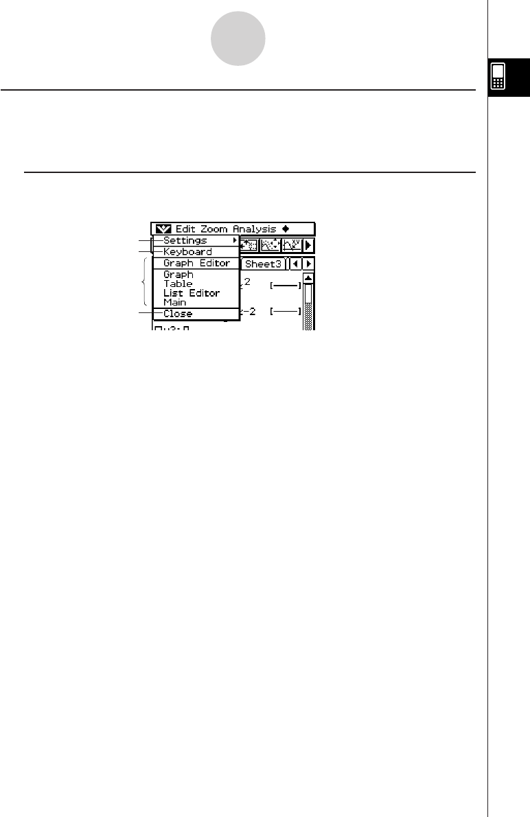ClassPad settings. For more information, see “Using the Settings Menu” on page 1-5-8.