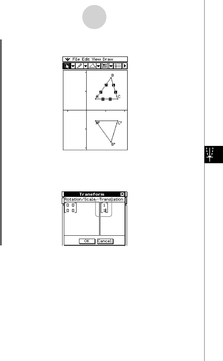 • This draws triangle A’B’C’, which is symmetrical to triangle ABC about the x-axis.