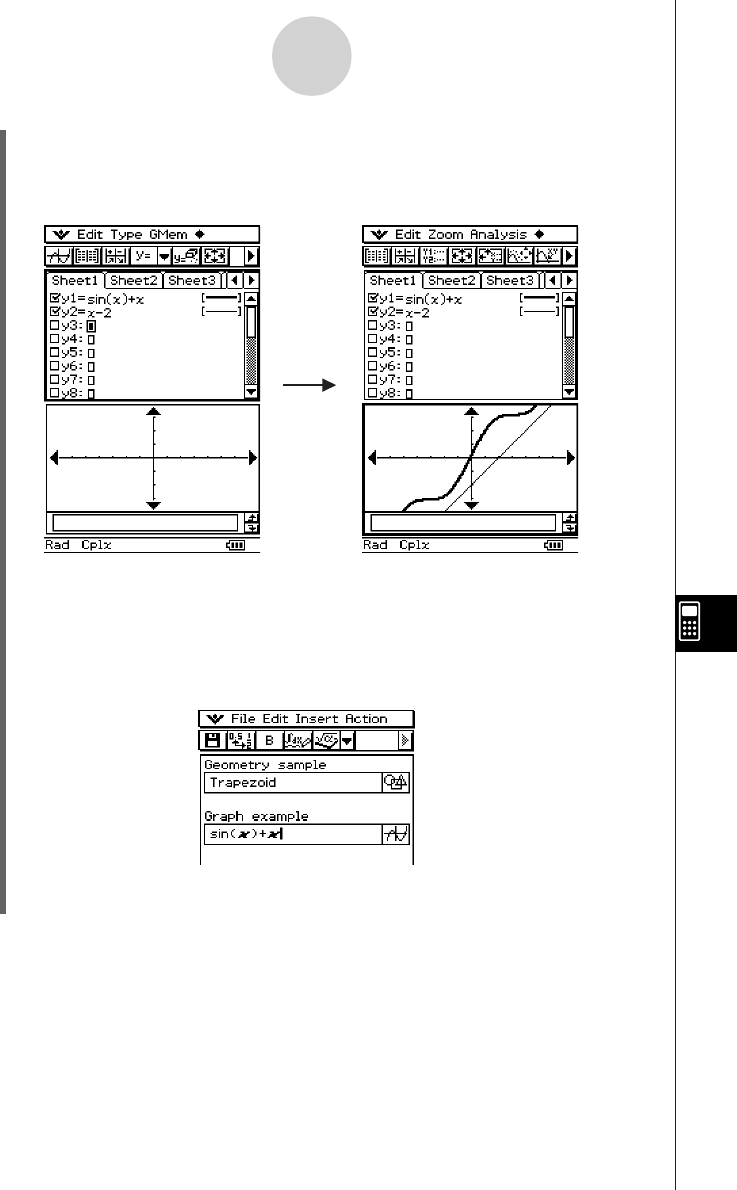 •Tap the ! button to display the Graph application’s Graph Editor window, enter a