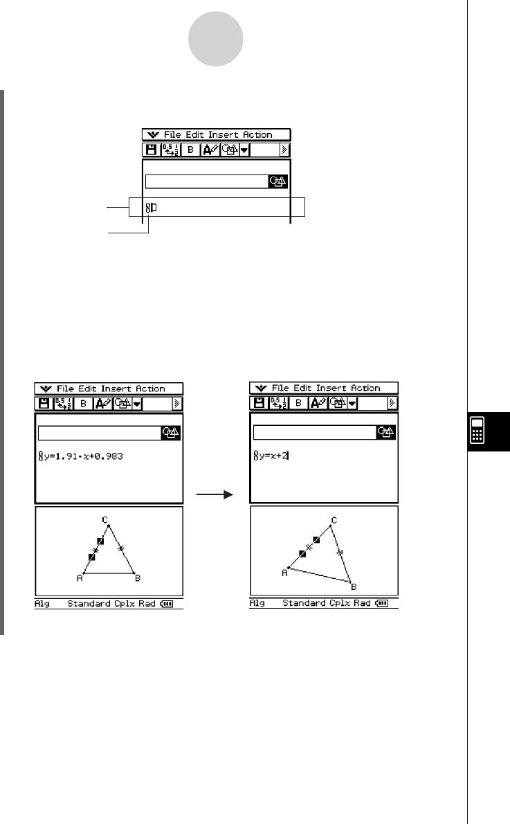 • Dragging a line or figure from the Geometry window to a text row or calculation row in an