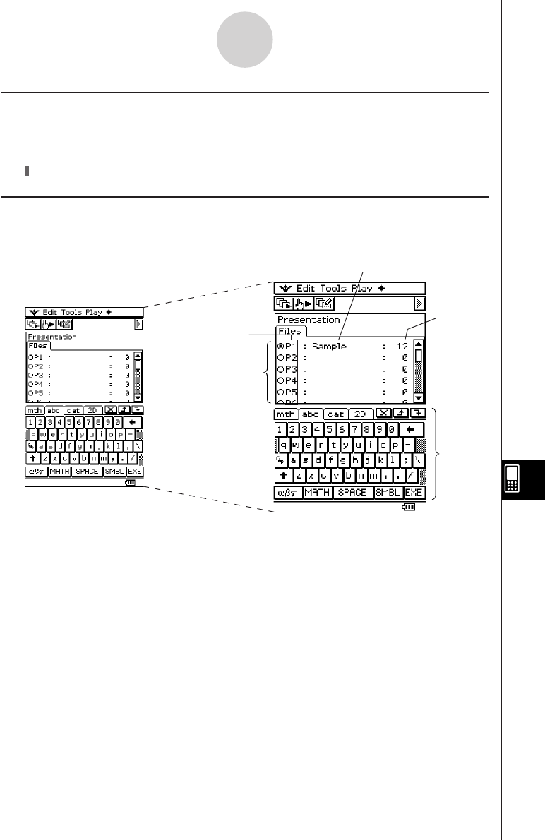 • Files are numbered P1 through P20. These numbers are fixed and cannot be changed.