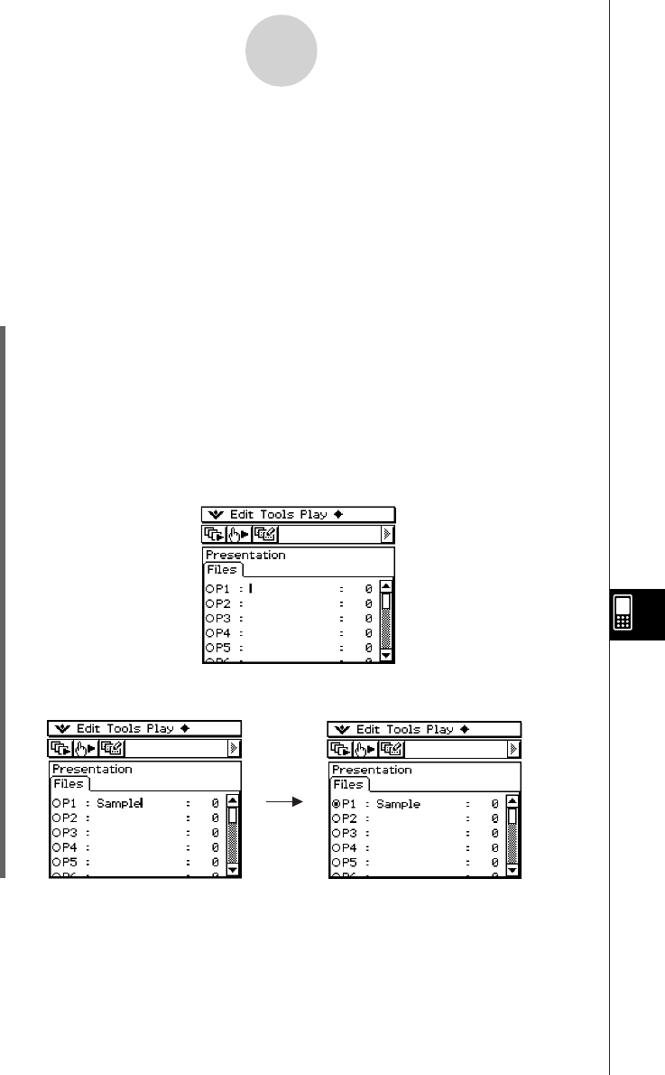 (5) Enter up to eight bytes for the presentation file name, and then tap w.